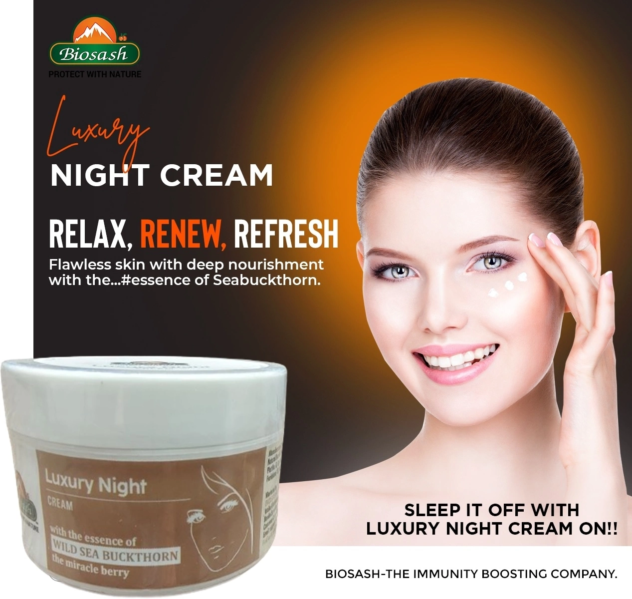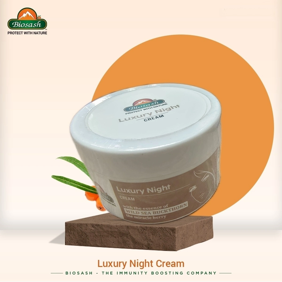 ✨ Rejuvenate your skin every night with Biosash Luxury Night Cream – a rich, nourishing blend crafted for soft, glowing, and youthful-looking skin. Infused with the natural power of 🌿 Sea Buckthorn Oils, 🌱 Aloe Vera, 🥛 Hydrolyzed Milk Protein, and 💧 Hydrolyzed Collagen, this cream deeply hydrates and restores your skin while you sleep.